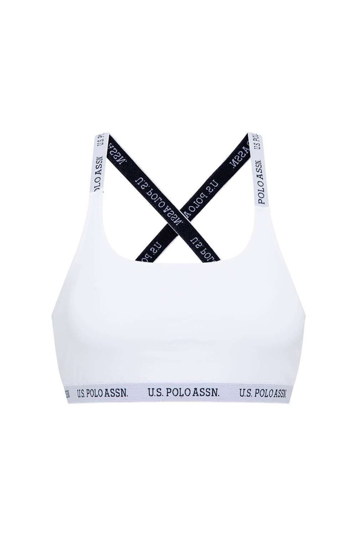 U.S. Polo Assn. 66117 – بستيير نسائي بحمالات متقاطعة، مصنوع من القطن والليكرا، باللون الأبيض