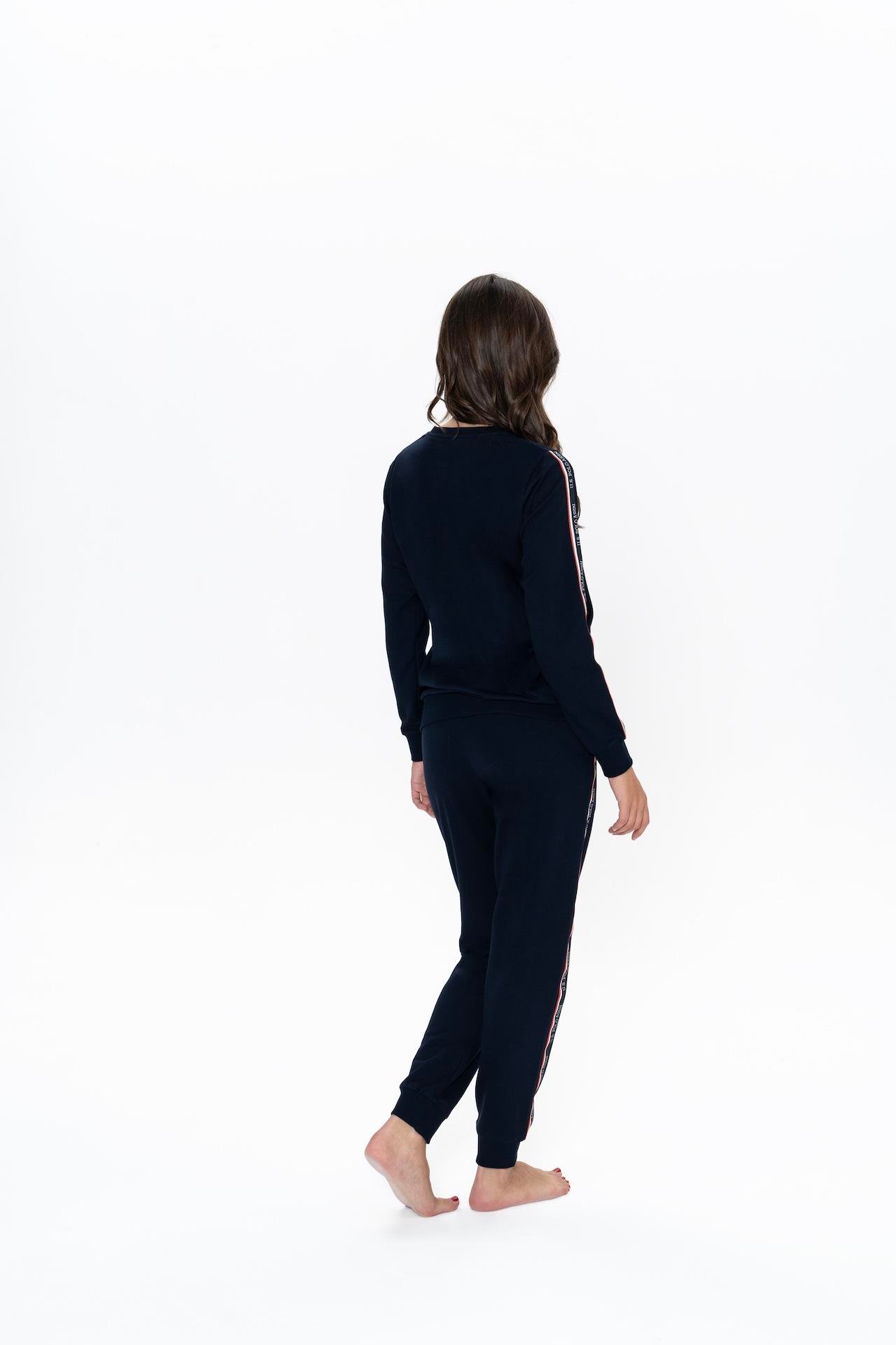 طقم بيجاما نسائي من U.S. Polo Assn. موديل 20113، بأكمام وأرجل مطاطية، بياقة دائرية، ومزوّد بجيوب، باللون الكحلي.