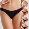 Pierre Cardin 2051 – طقم سراويل داخلية نسائية سترينغ بخصر منخفض، عبوة من 5 قطع، بخطوط غير ظاهرة (No Show)، مصنوع من القطن، بالألوان الأسود والأبيض والبيج