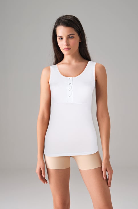 Doreanse 9112 Women’s Snap Collar Wide Strap Tank Top White