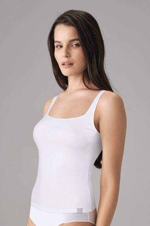 Doreanse 9328 Women’s 92% Cotton Ribbed Square Neck Tank Top White