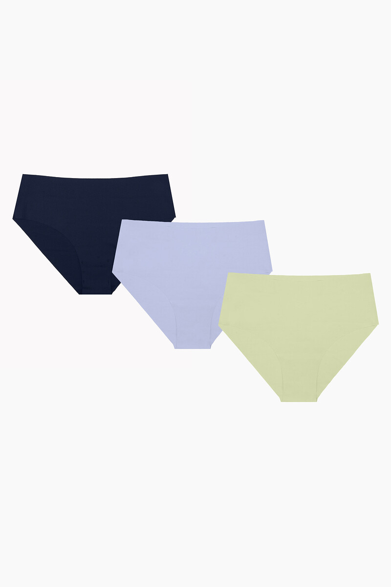 NBB 327 Light Khaki, Blue & Navy 3-Pack Seamless High-Waist Panties Multicolor