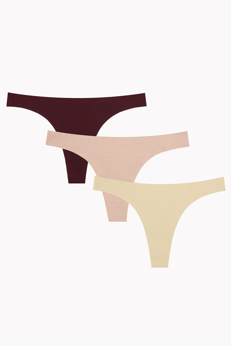 NBB 329 Nude, Burgundy & Cappuccino 3-Pack Seamless Laser-Cut Thongs Multicolor