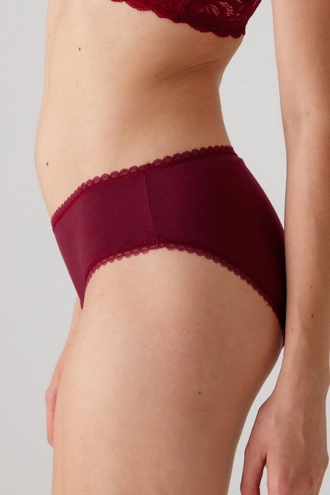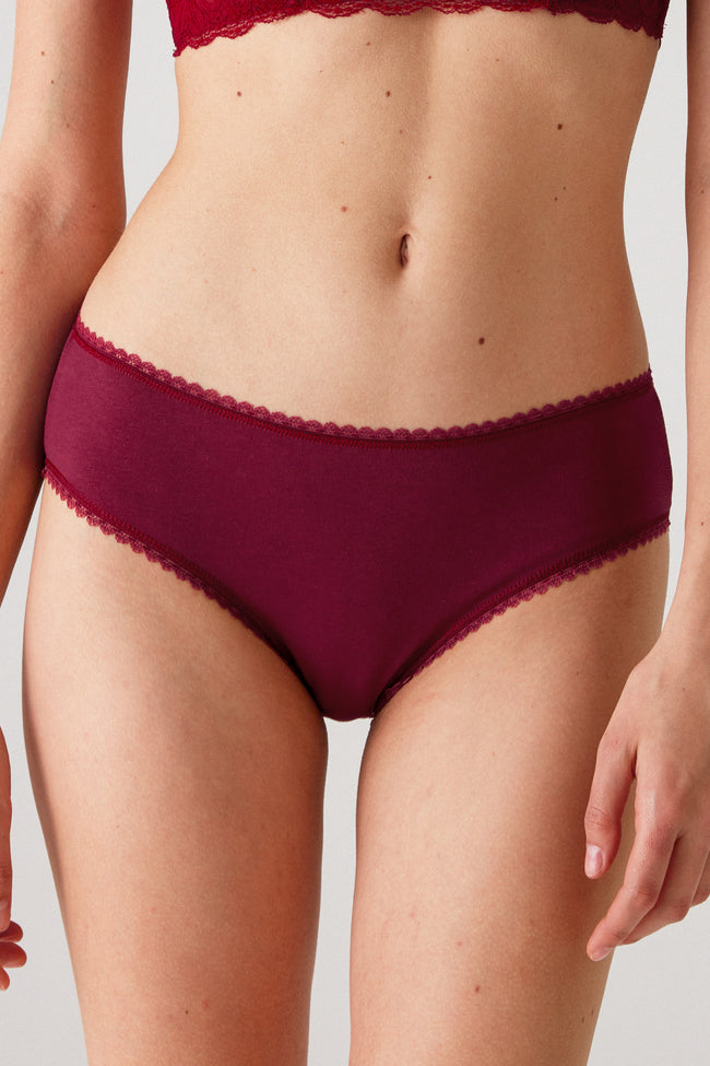 Pierre Cardin 2238, 3 Pack, Cotton Jersey Slip Panty with Chain Lace Trim, Burgundy & Ecru & Powder Pink
