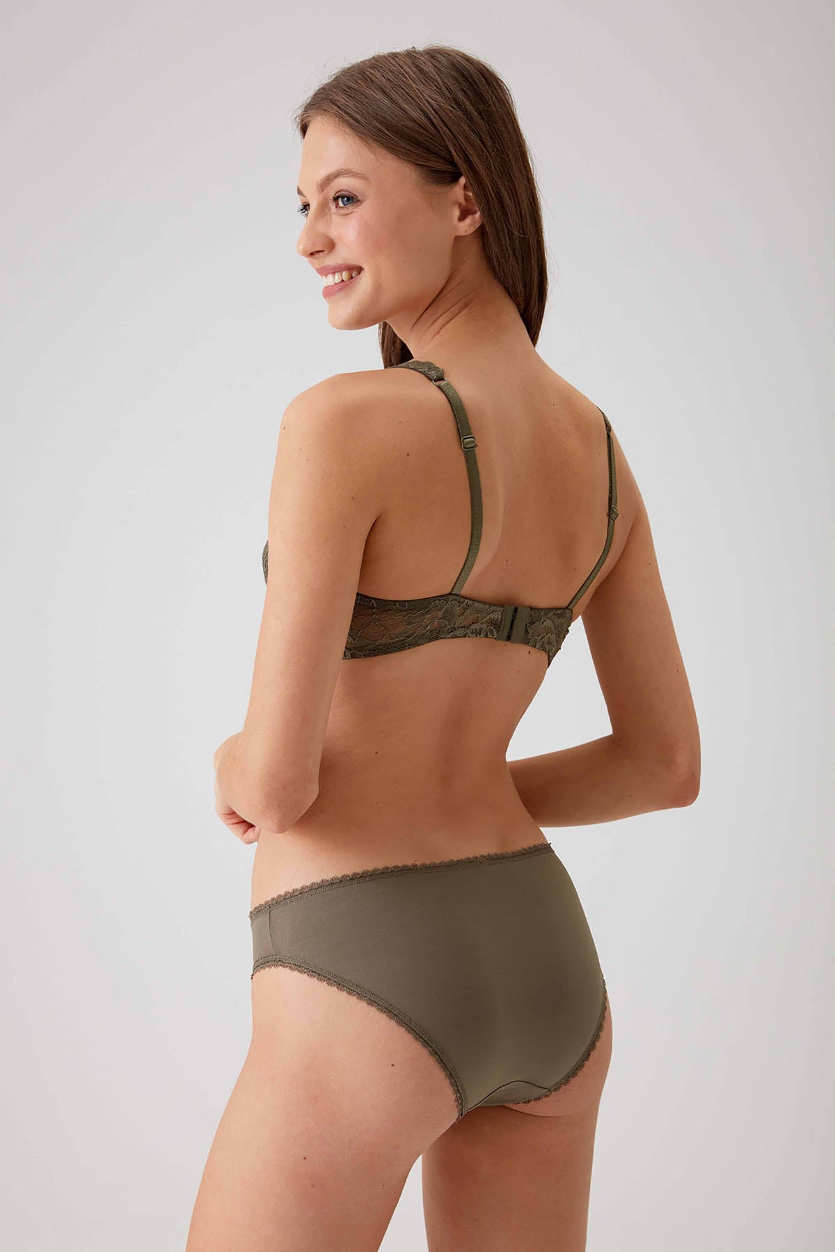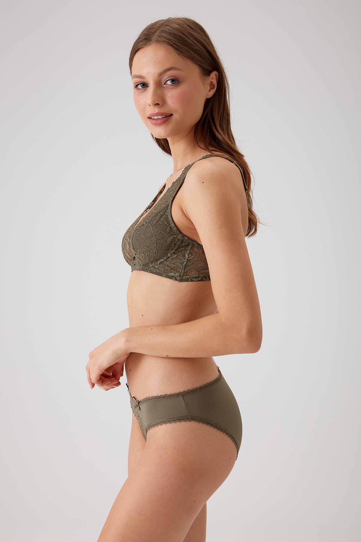 - Design: Underwired non-padded lace bralette with matching panty