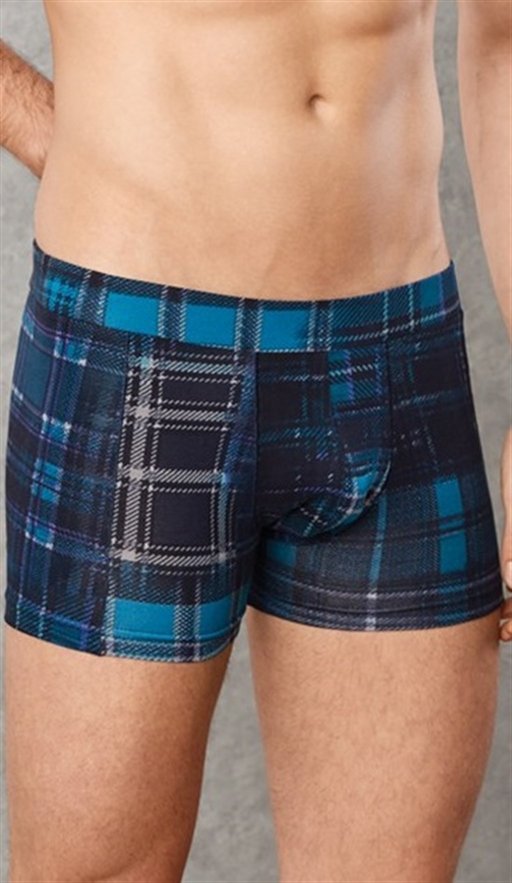 Doreanse Men’s Modal Printed Plaid Patterned Regular Leg Boxer 1876 Imprime Collection Blue